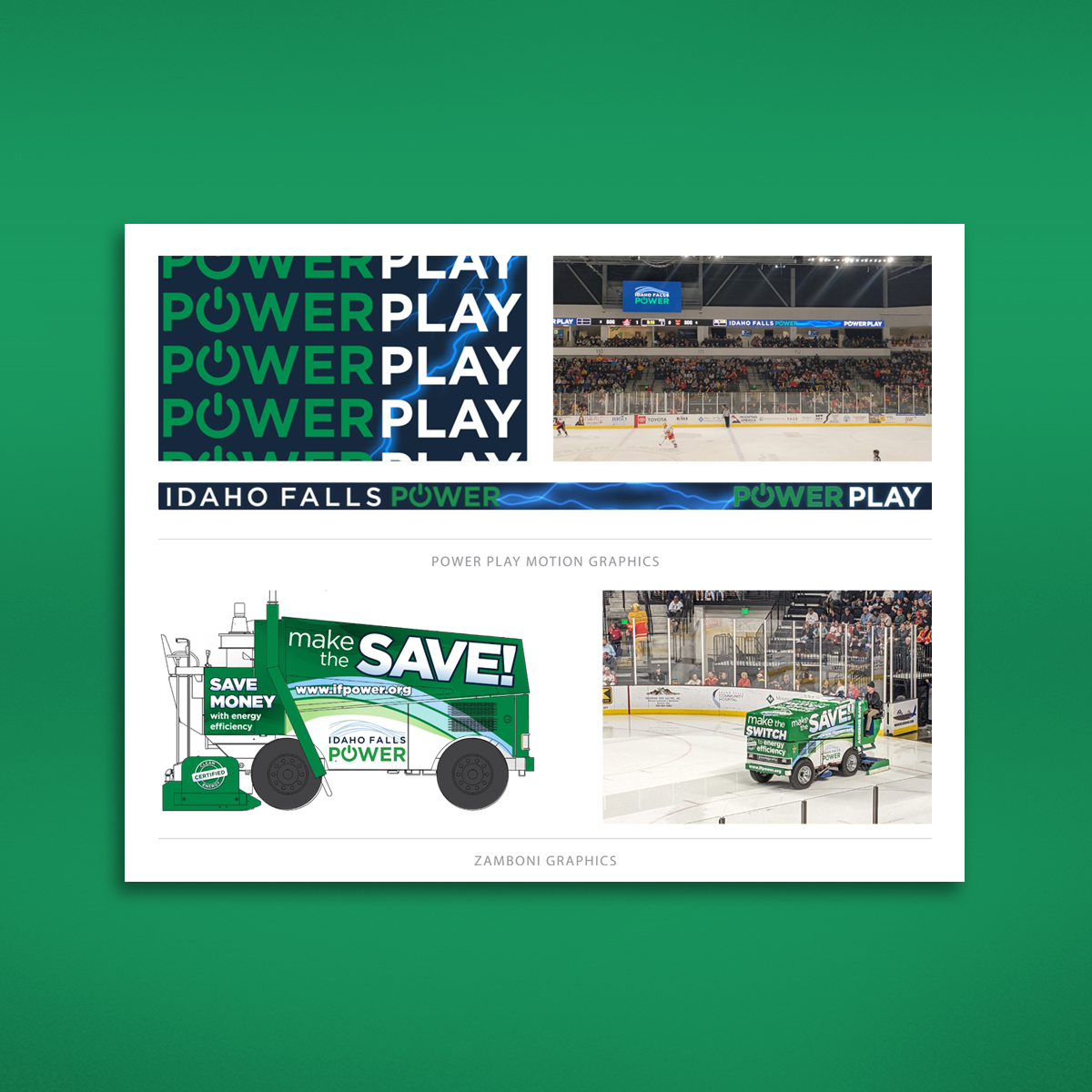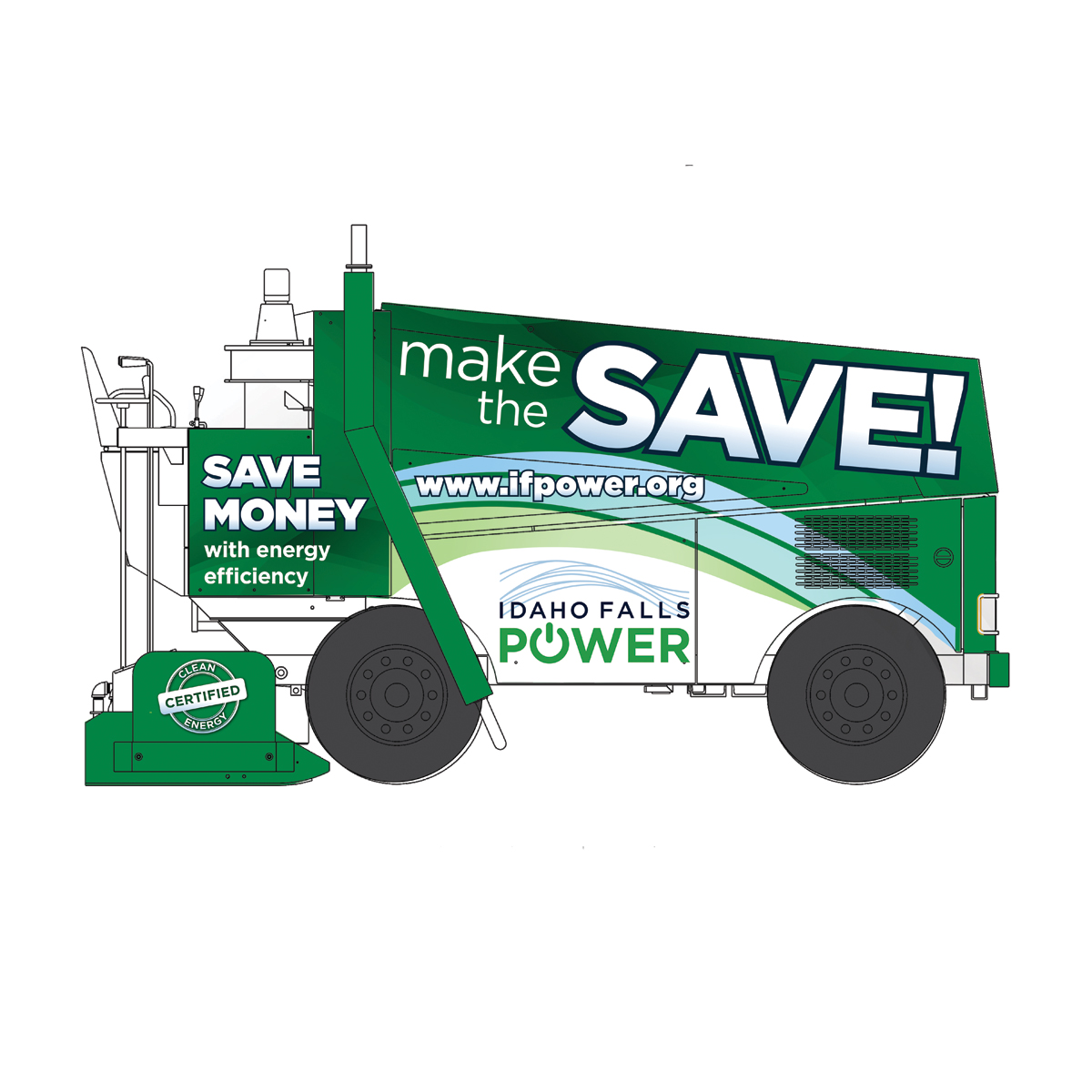 Accompanied by jumbo digital displays, this vibrant zamboni is seen by thousands of hockey fans each season. RED Inc. developed animations and a vehicle wrap to help IF Power capitalize on the popularity of this local sporting event.
