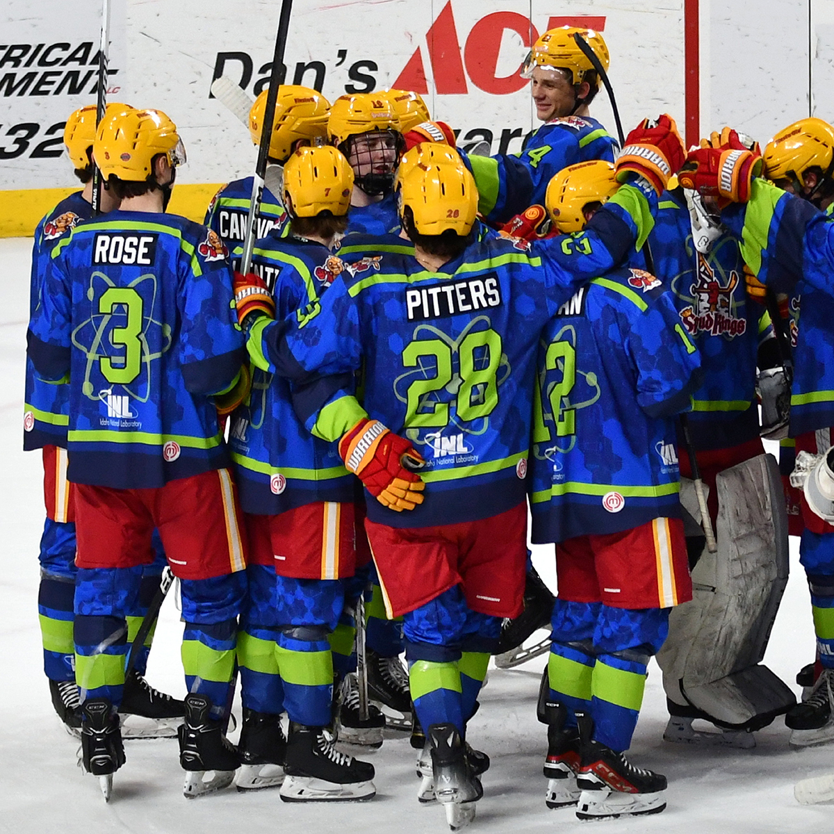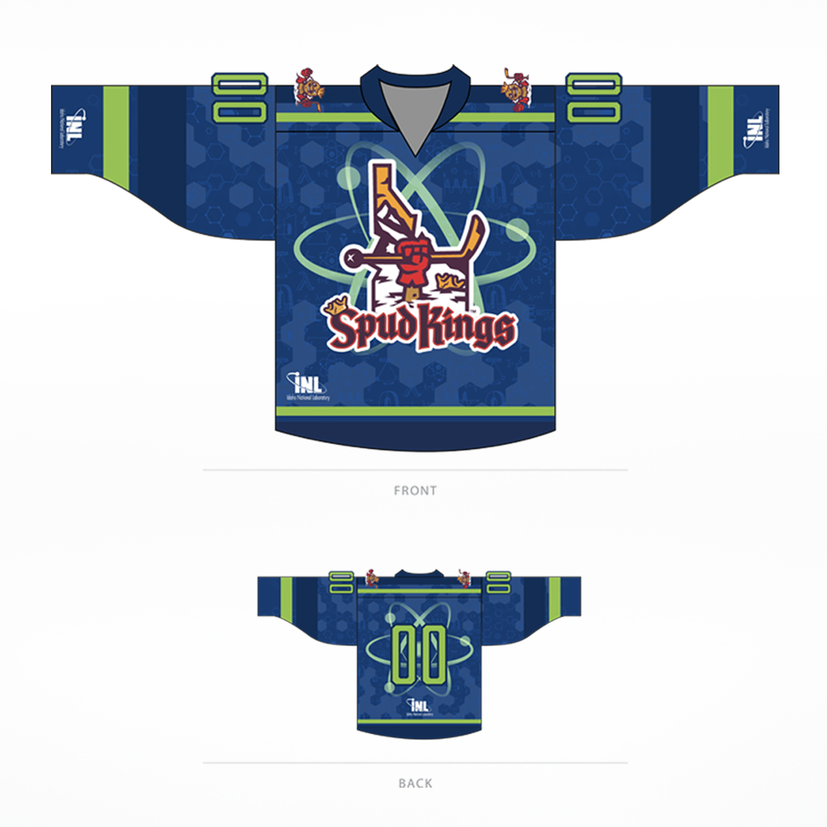 This custom hockey jersey was fashioned for INL employee night at a U.S. Premier Hockey League game. The uniforms were worn by the Idaho Falls Spud Kings during the match, auctioned off, and the funds were donated to a veterans charity. The effort raised over $13,000 in one night!